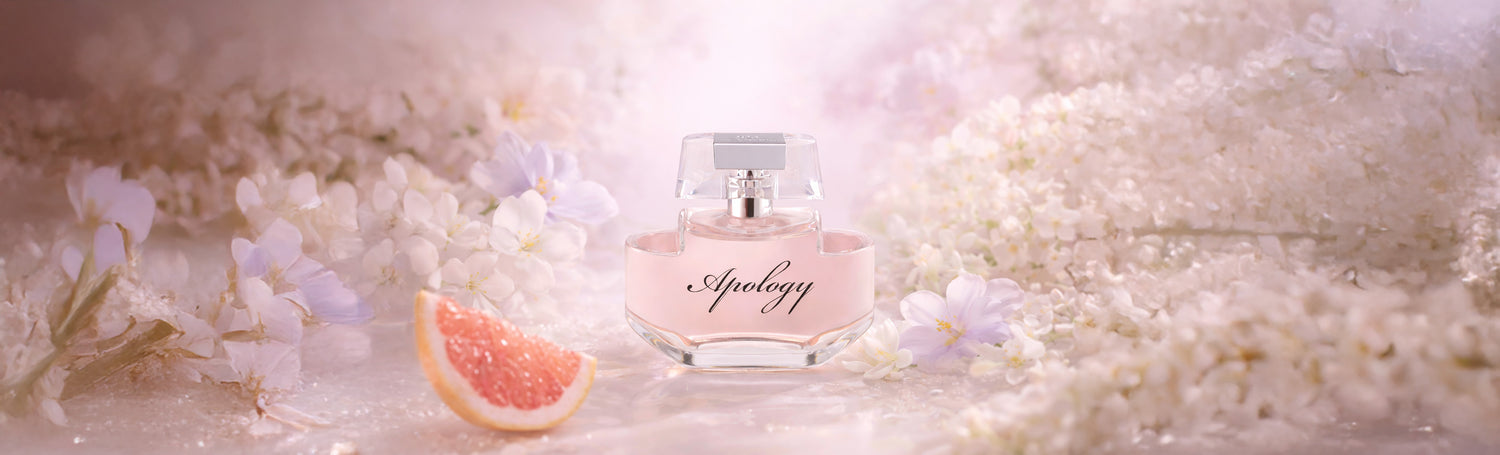 Apology is a playful and sparkling perfume that starts with a burst of Grapefruit. The floral and crystalline heart is adorned with a fruity touch, tangy and slightly sweet. The velvety base of Clear Amber and White Woods wrapped in Musks leaves a trail as soft as a caress.